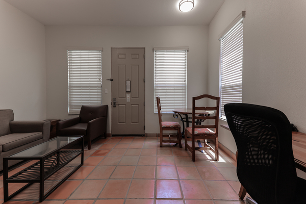 King bed suite with mini kitchen, separate living room.